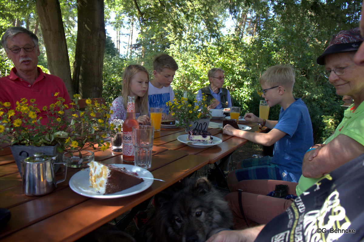 Im Anschluss an den Spaziergang bietet uns Vier- und Zweibeinern "Der Schafstall" den idealen Rahmen, um in uriger Atmosphäre, bei schönem Wetter auch draußen inmitten der Natur, mit leckerem Kuchen oder Gerichten aus der Region in gemütlicher Runde den Nachmittag ausklingen zu lassen.