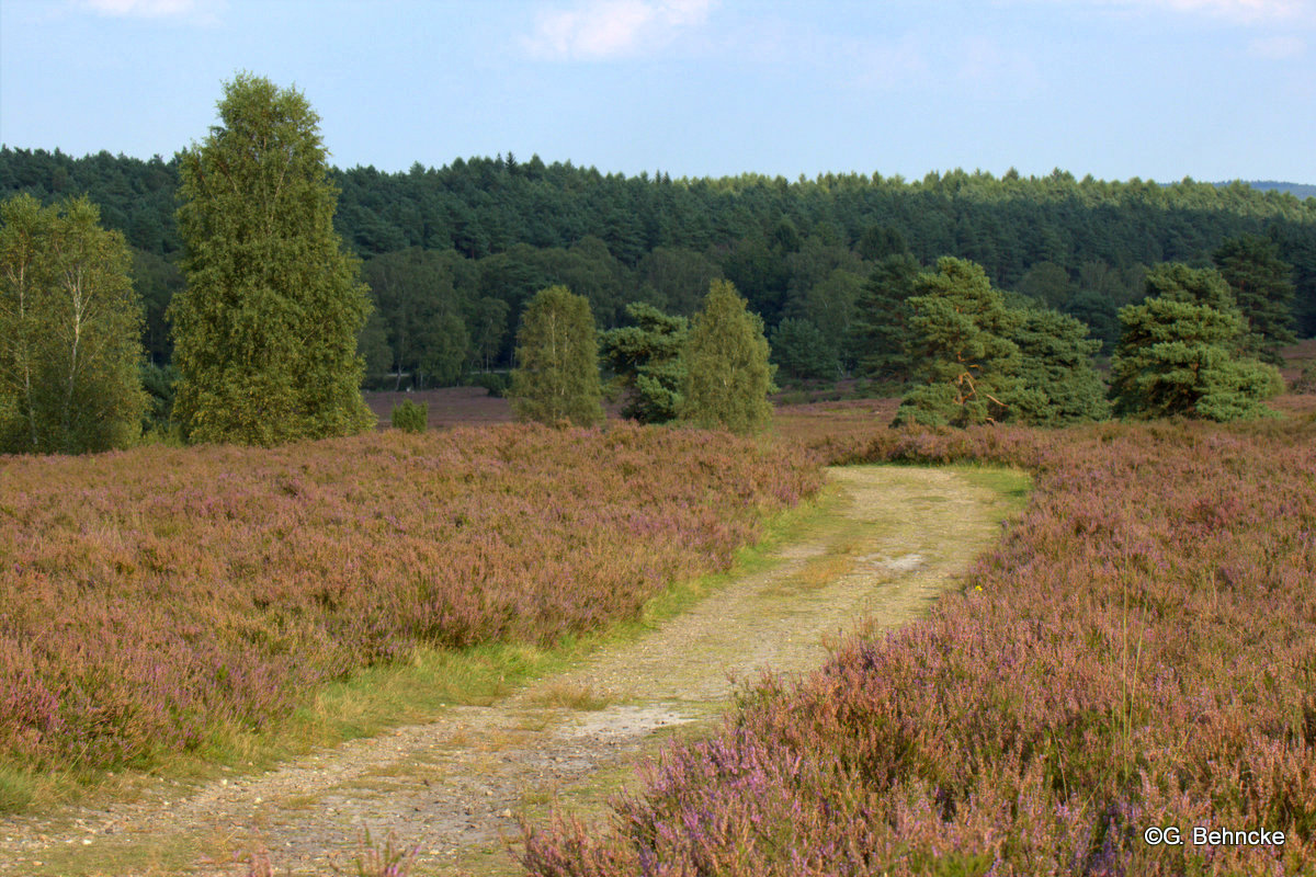 Das idyllische Büsenbachtal im Naturpark Lüneburger Heide ist ein beliebtes Ausflugsziel. Die hügelige Heidelandschaft rund um den Büsenbach, durchzogen von Wanderwegen, bietet immer wieder romantische Ausblicke weit über das Tal. Nicht nur zur Heideblüte im Spätsommer, sondern zu jeder Jahreszeit begeistert dieses Gebiet Naturfreunde. Unsere Hunde freuen sich jedesmal überschwänglich, dort mit ihresgleichen toben und durch das Wasser des kleinen Heideflusses spingen zu können.