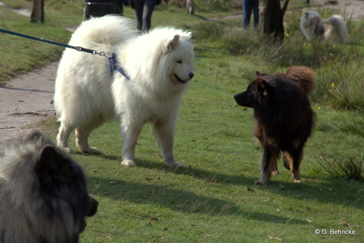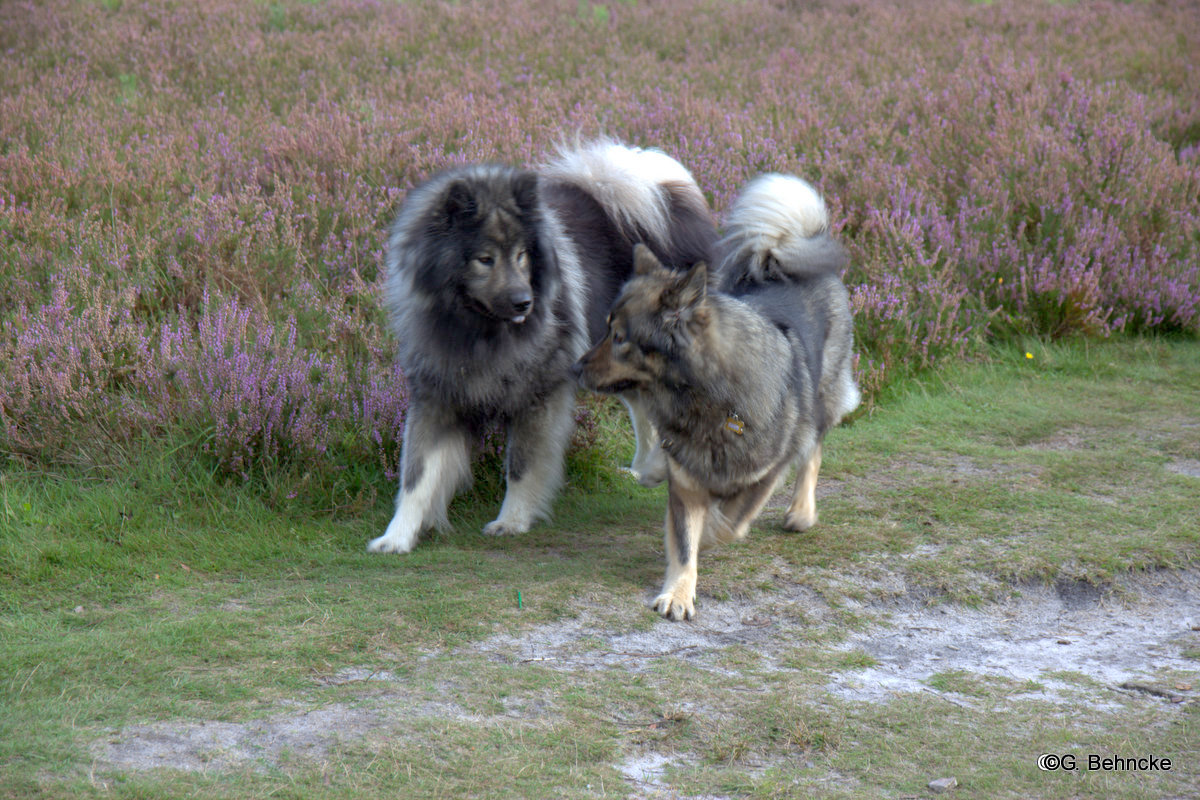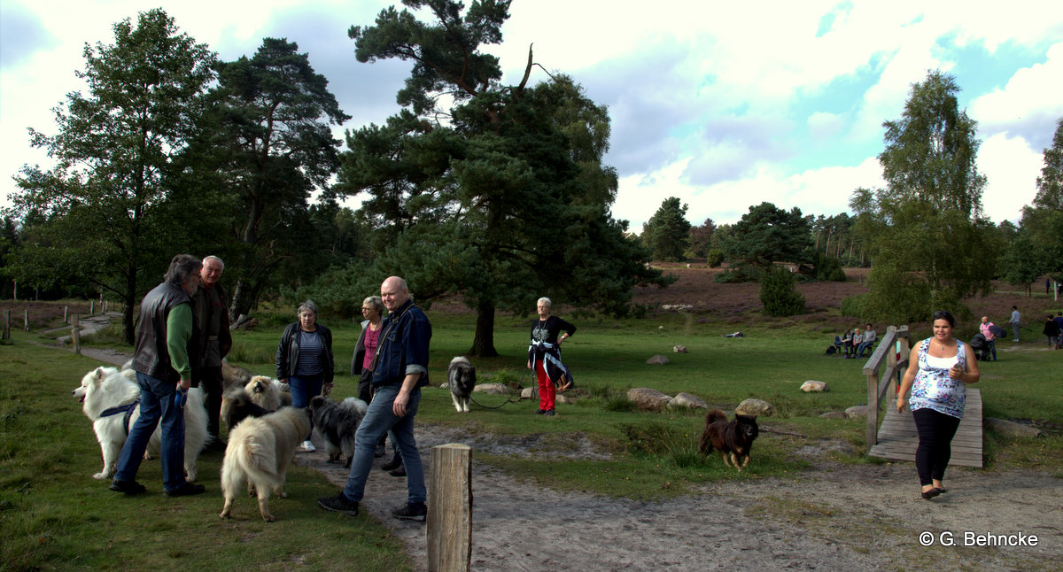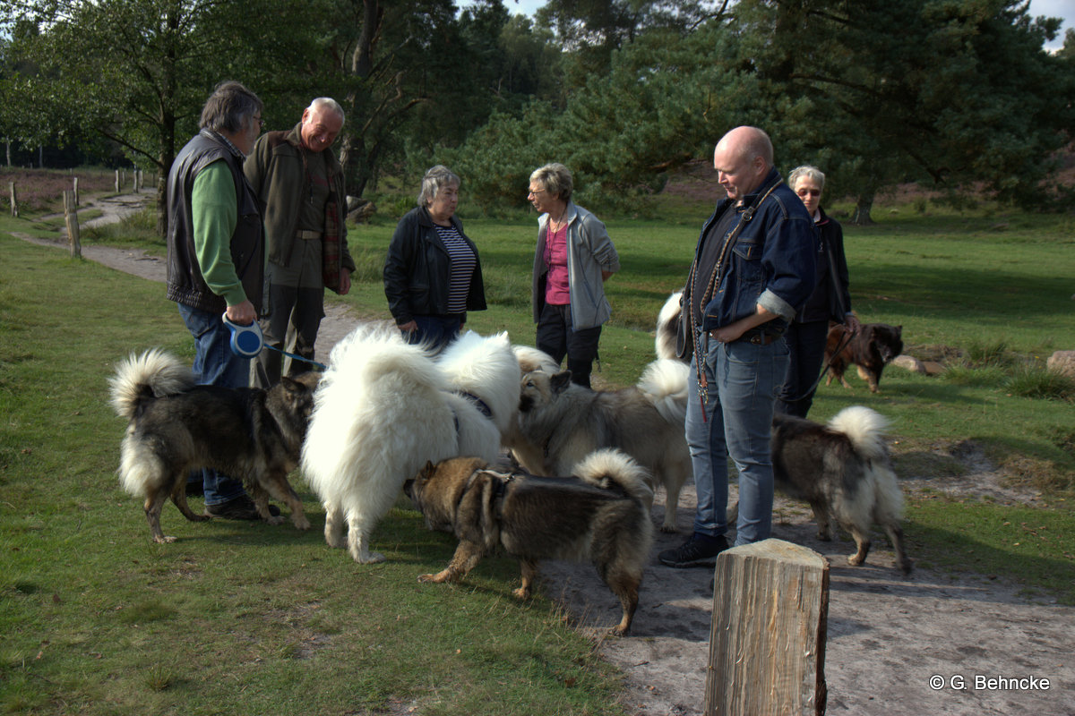 Am Sonntag, dem 10.09.2017, trafen sich zum Spaziergang im Büsenbachtal neun Zweibeiner mit ihren zwölf Eurasiern plus einem Samojeden. Unsere Gruppe konnte die wunderbare Heideblüte bei sonnigem, mildem Wetter genießen. Die Hunde fühlten sich wieder in so schöner Umgegung rund um wohl – am und im Büsenbach sowie in der herrlichen Heidelandschaft hatten sie ihren Spaß... – Mit einem guten Stück Kuchen im "Schafstall-Garten" ging dieser schöne Eurasier-Nachmittag dann zuende. Wir freuen uns schon auf eine Neuauflage unseres Büsenbachtal-Spaziergangs am 12.11.2017 und laden wieder alle Interessenten herzlich dazu ein!