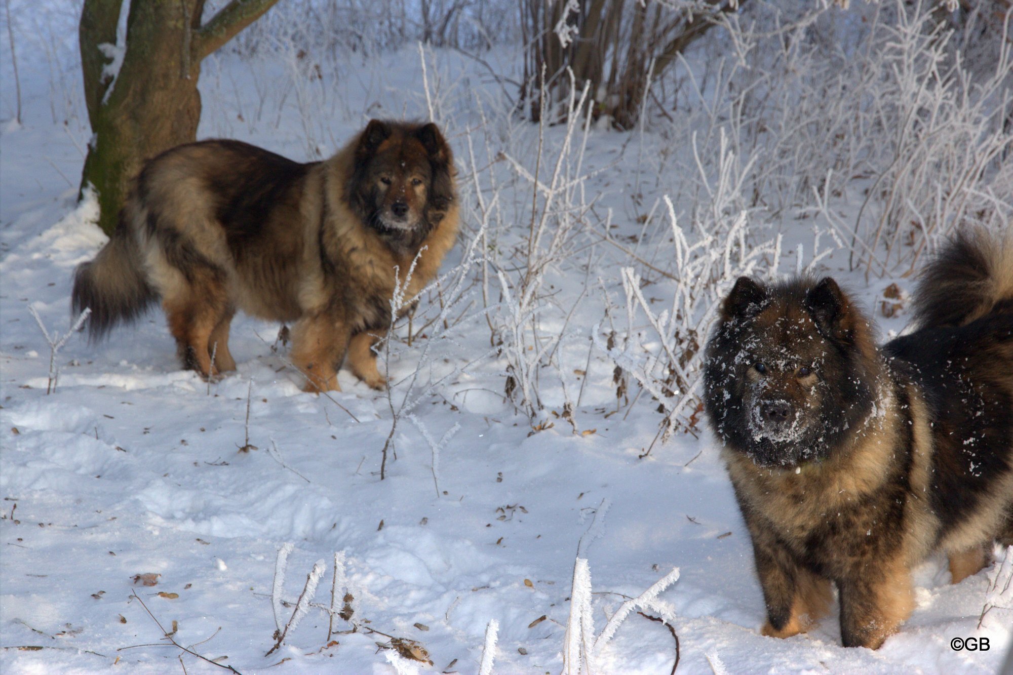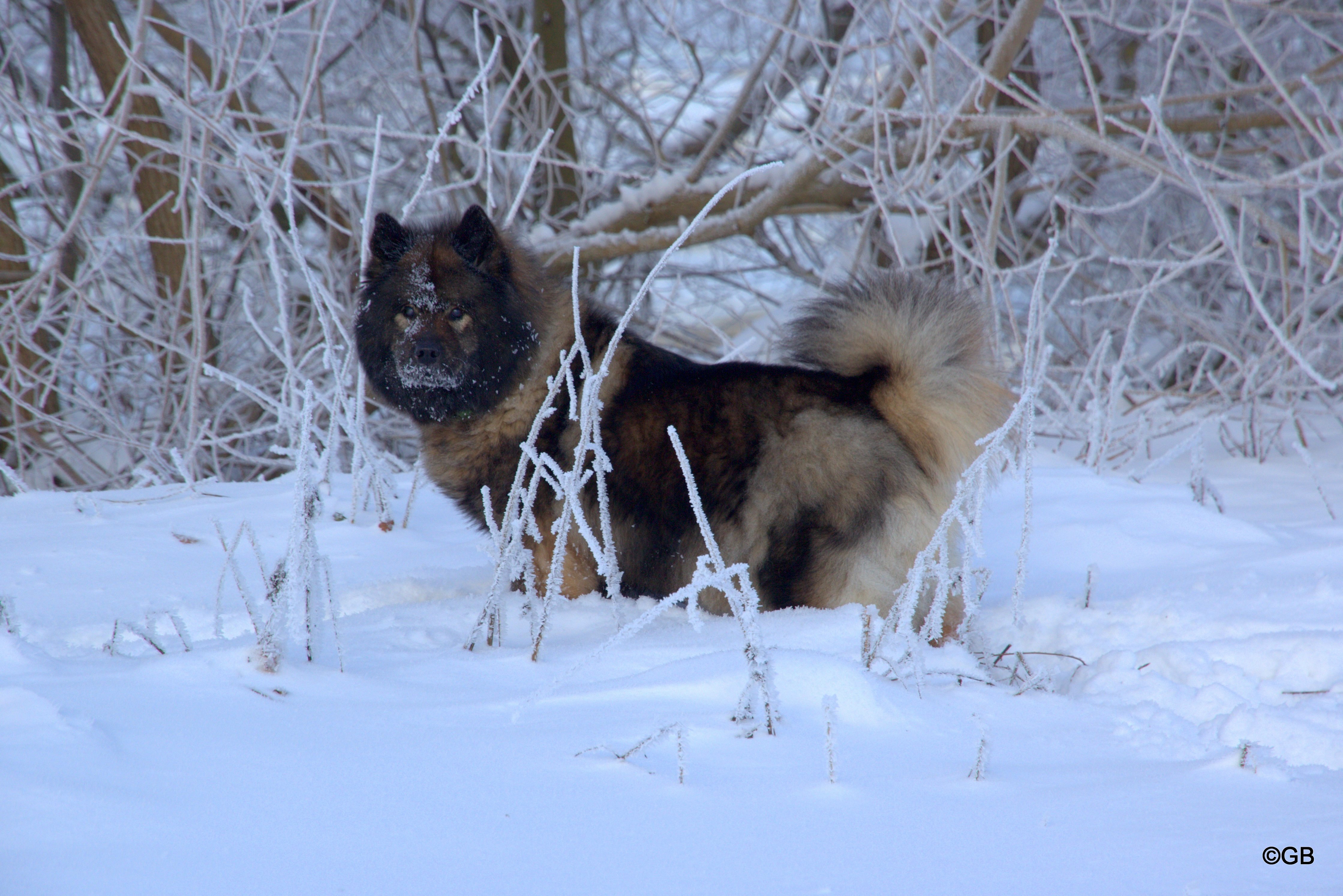 Am Sonntag, den 11. Januar 2026, fand unser erster Stove-Spaziergang in diesem Jahr statt. Nachdem am vorhergegangenen Freitag ein Schneesturm über unsere Region gefegt war, und die Temperaturen in der vorherigen Nacht auf unter Minus 10°C gefallen waren, hatten sich an diesem Sonntag nicht viele Eurasierbesitzer mit ihren Vierbeinern auf den Weg zum Treffen gemacht. Genau genommen freuten wir uns gerade mal über eine mutige ältere Dame, mit der wir und unsere beiden vierzehn- und elfjährigen Eurasiermädchen das Schneeparadies Stove an diesem Sonntagnachmittag zusammen erleben durften.