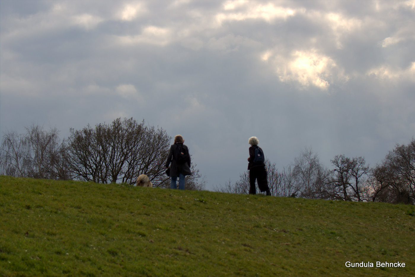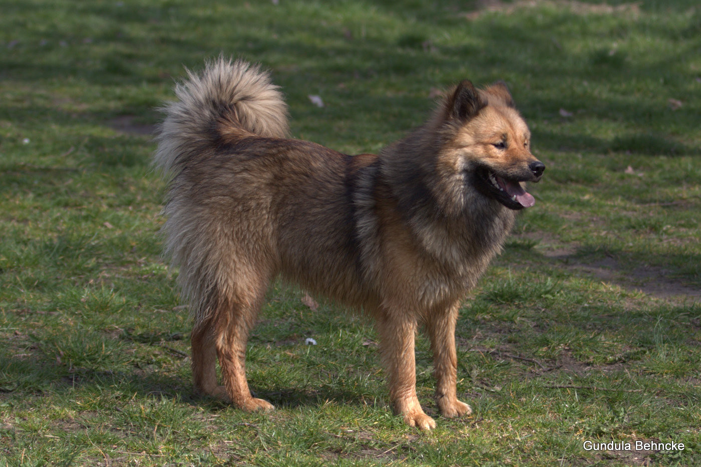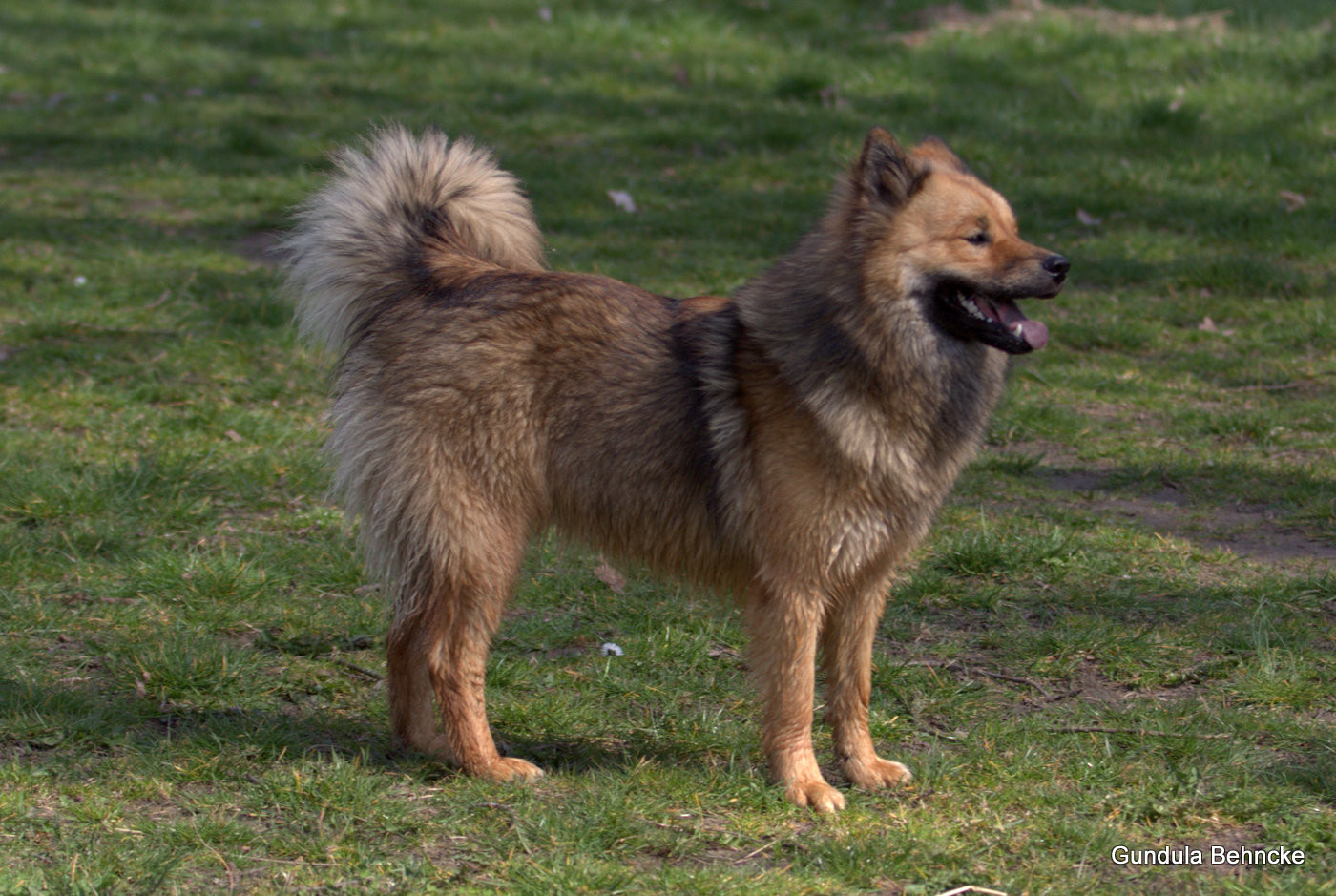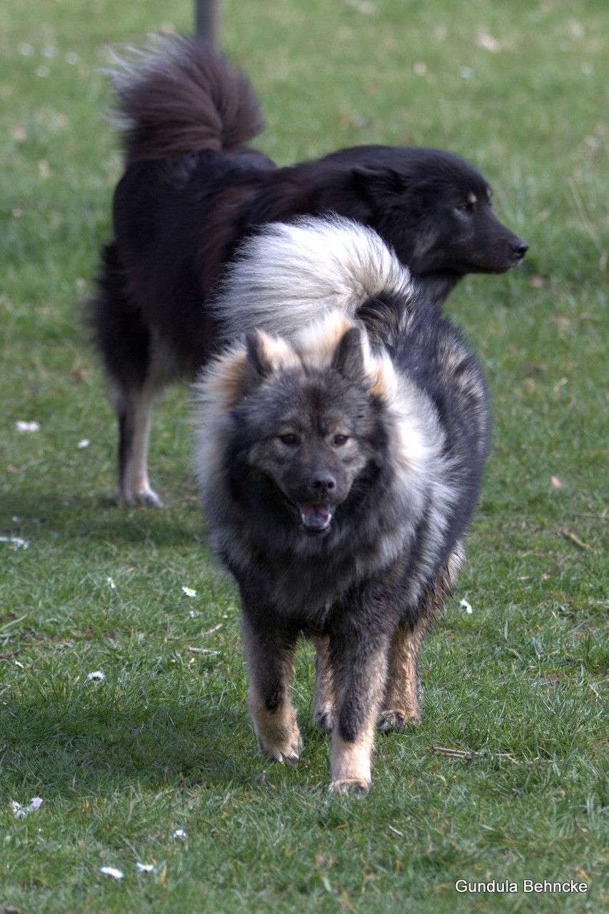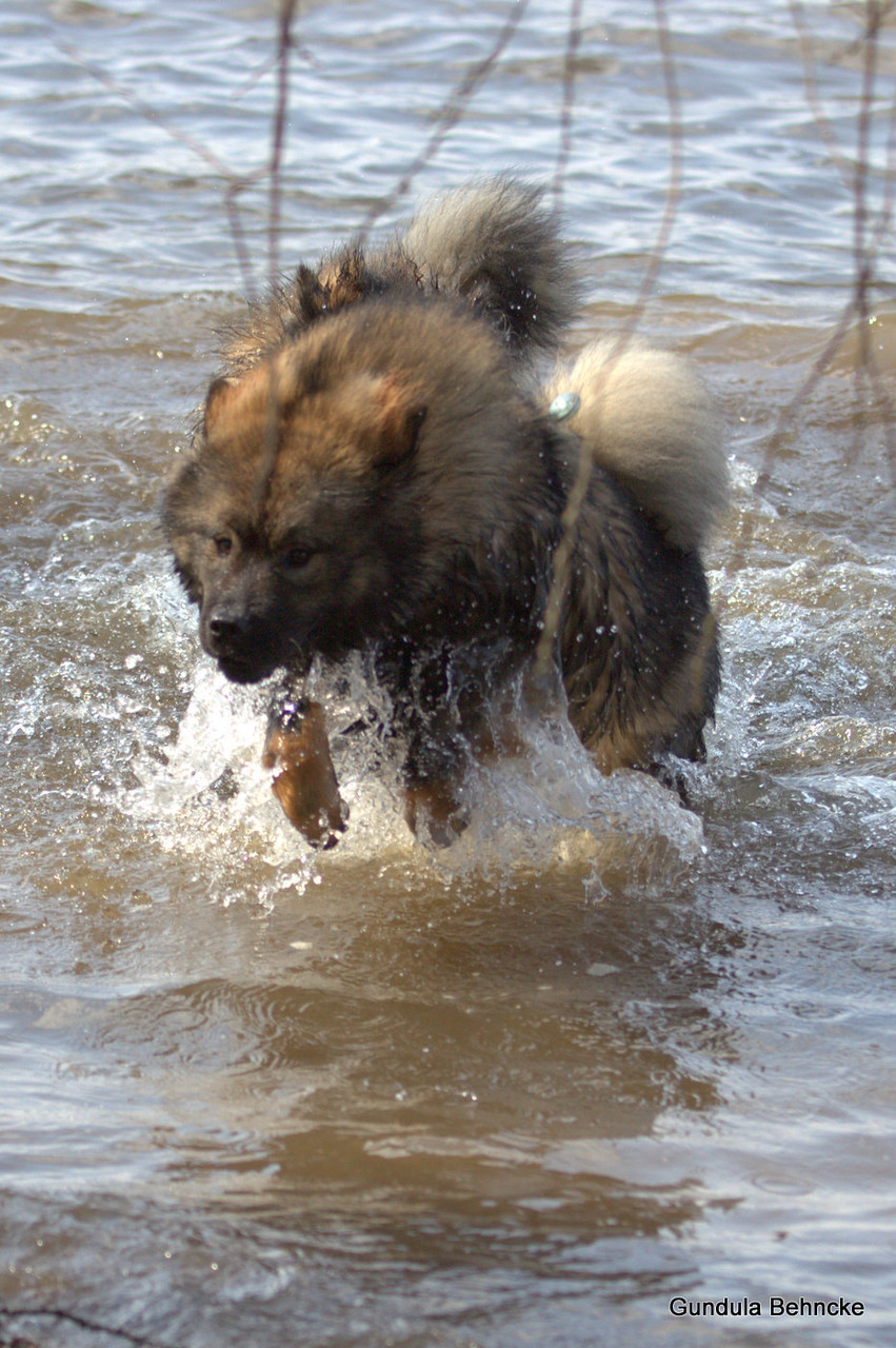 Bei frühlingshafter Temperatur - knapp unter 20°C -, blauem Himmel und Sonnenschein trafen sich am Sonnabend, dem 11. April 2015, siebenundzwanzig Eurasier und die sie begleitenden Menschen auf dem Parkplatz an der Stover Rennbahn. Die Hunde begrüßten sich voller Wiedersehensfreude und konnten es kaum erwarten über den Deich geführt zu werden, um danach abgeleint auf den saftig grünen Elbwiesen toben zu dürfen. Es war gerade Flut, und somit erreichten die Wasserratten unter den Vierbeinern nach wenigen Sprüngen über den Strand das geliebte kühle Nass. Wir Zweibeiner freuten uns, dem munteren Spiel der Hunde im Wasser zusehen zu können. Da schon die ersten Frühlingsblumen blühten, gab es wieder einmal zauberhafte Durchblicke über den Ufersaum zum Elbstrom. Erst am Ende des Rundwegs zogen erste dunkle Wolken auf, sodass das anschließende Kaffeetrinken im Hotel "Zur Rennbahn" zwar zunächst noch im Cafe´-Garten begann, dann aber aufgrund plötzlich einsetzenden Regens doch noch nach drinnen verlegt werden musste. Doch dieses konnte der guten Stimmung bei Hund und Mensch keinen Abbruch tun. Die erste Vorsitzende der ZG, Dr. Michaela Witte, hatte für die Vierbeiner kleine Gläser mit selbst gebackenen Hundekeksen in verschiedenen Sorten mitgebracht und auf den Tischen verteilt, so dass auch unsere Eurasier eine kleine Stärkung bekommen konnten - eine sehr nette Idee - danke!