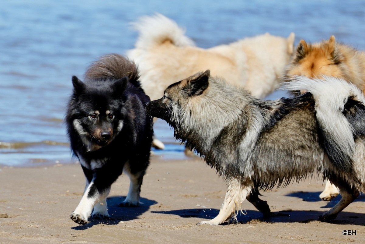 Am Sonntag, dem 11. Mai 2025, machten sich vierzehn eurasierbegeisterte Zweibeiner mit ihren Fellnasen auf die Fahrt nach Stove an der Elbe, wo unser diesjähriger Muttertags-Eurasierspaziergang stattfinden sollte. Wie wir dann um 14 Uhr auf dem Parkplatz vor dem Hotel "Zur Rennbahn" feststellten, war die Gruppe diesmal etwas anders zusammengesetzt als bei den letzten Spaziergängen. So freuten wir uns, ein fünfzehn Wochen altes Eurasiermädchen unter den teilnehmenden Hunden zum ersten Mal begrüßen zu können, das sich schon richtig gut behauptete. Und auch die anderen drei neu dazugekommenen Eurasier fügten sich gut in die Gruppe ein.